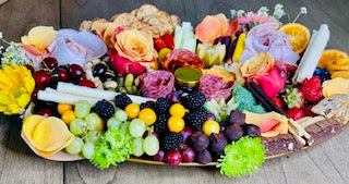 Choice of 2 meats (smoked salmon, pork, chicken, beef or turkey) + assorted salami, pepperoni, choice of 2 cheeses (soft, semi-soft, and/or hard), assorted dried and fresh fruits, assorted vegetables, olives, nuts, wafers, crackers, almond biscotti, macaroons, petit fours, chips, assorted spreads and jams; Wine or Prosecco