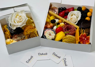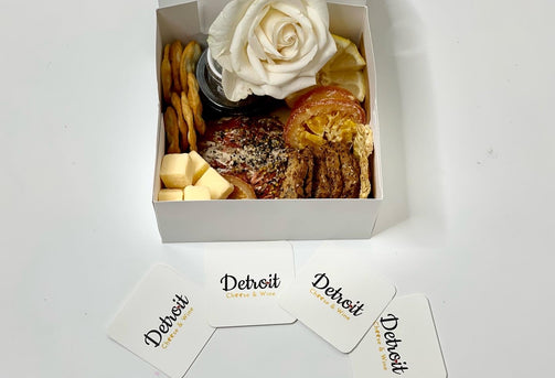An individual serving of either smoked salmon or grilled chicken paired with assorted biscuits, crackers, fresh lemon or orange, cheese, pickled onions, capers, and dried aromatic fruits. This box is a sidecar paired ONLY with the purchase of a large box or board; NOT available for individual sale.